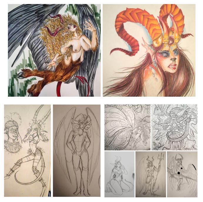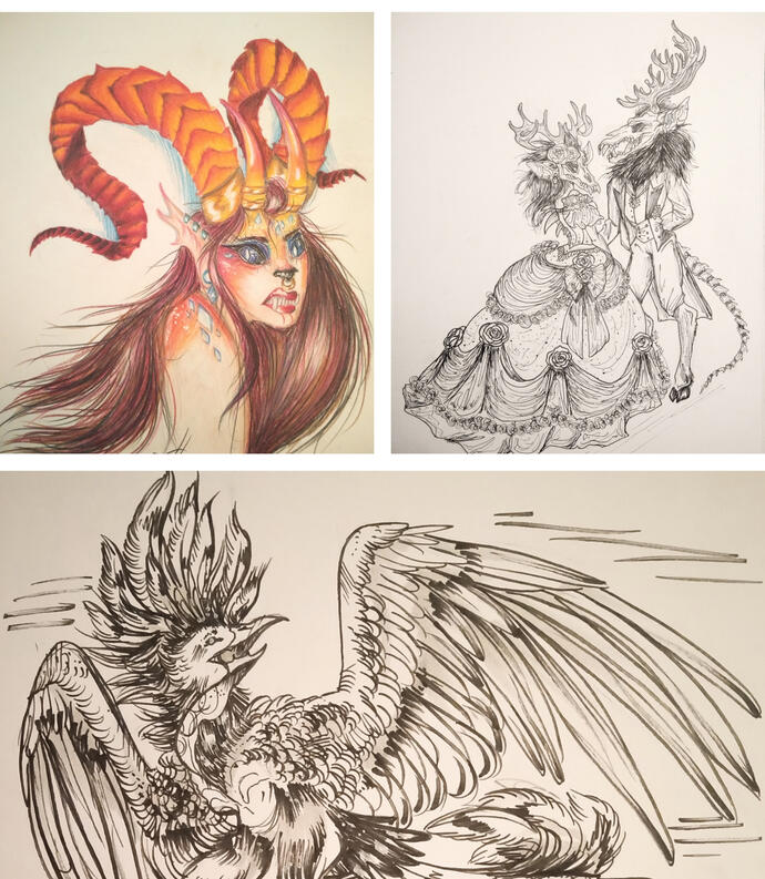 •Flexible on poses, details, expressions••Add a background + 2-30$ (depending complexity and style)••Add extra creature + Half of original price (available for colour, painted and lined pieces only)